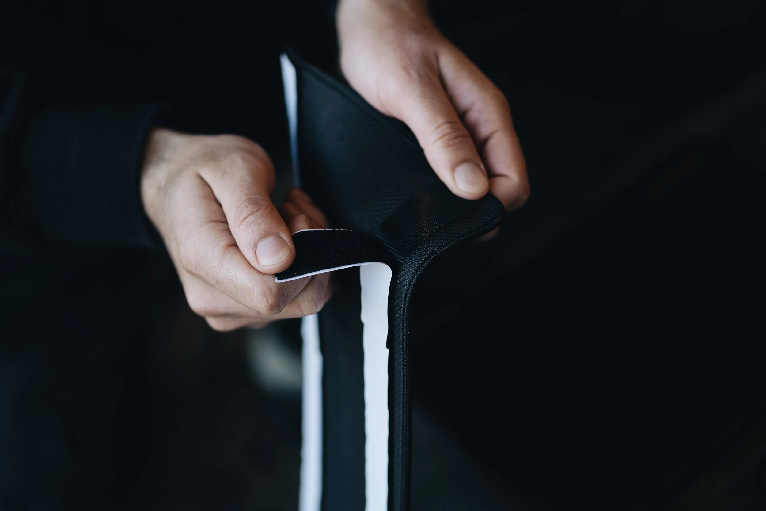 For carpet floor mats, just stick on the exposed velcro strips. For all-weather mats simply peel the adhesive strip.